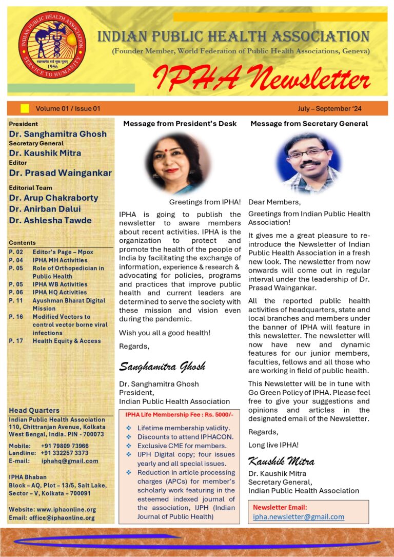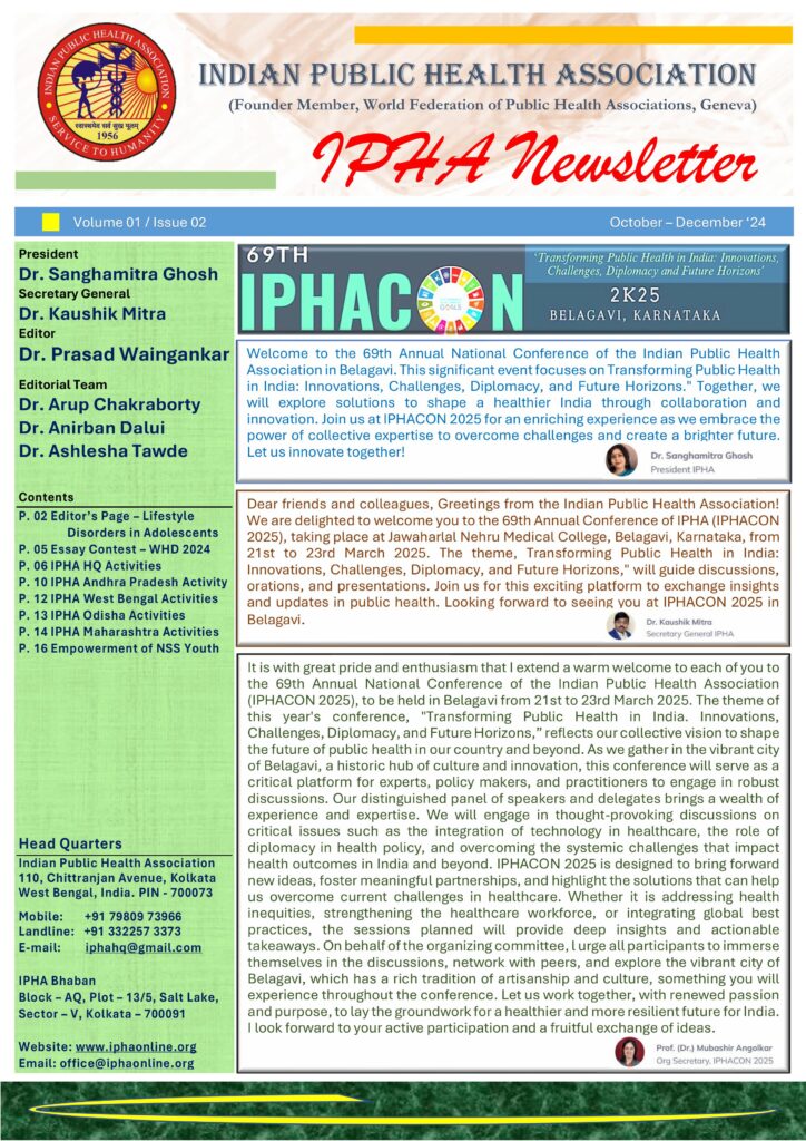 Newsletter Newsletters of Indian Public Health Association Newsletter Vol.1 Issue1 Newsletter Vol.1 Issue 2 Newsletter Vol. 2 Issue 1 Newsletter Vol. 2 Issue 2